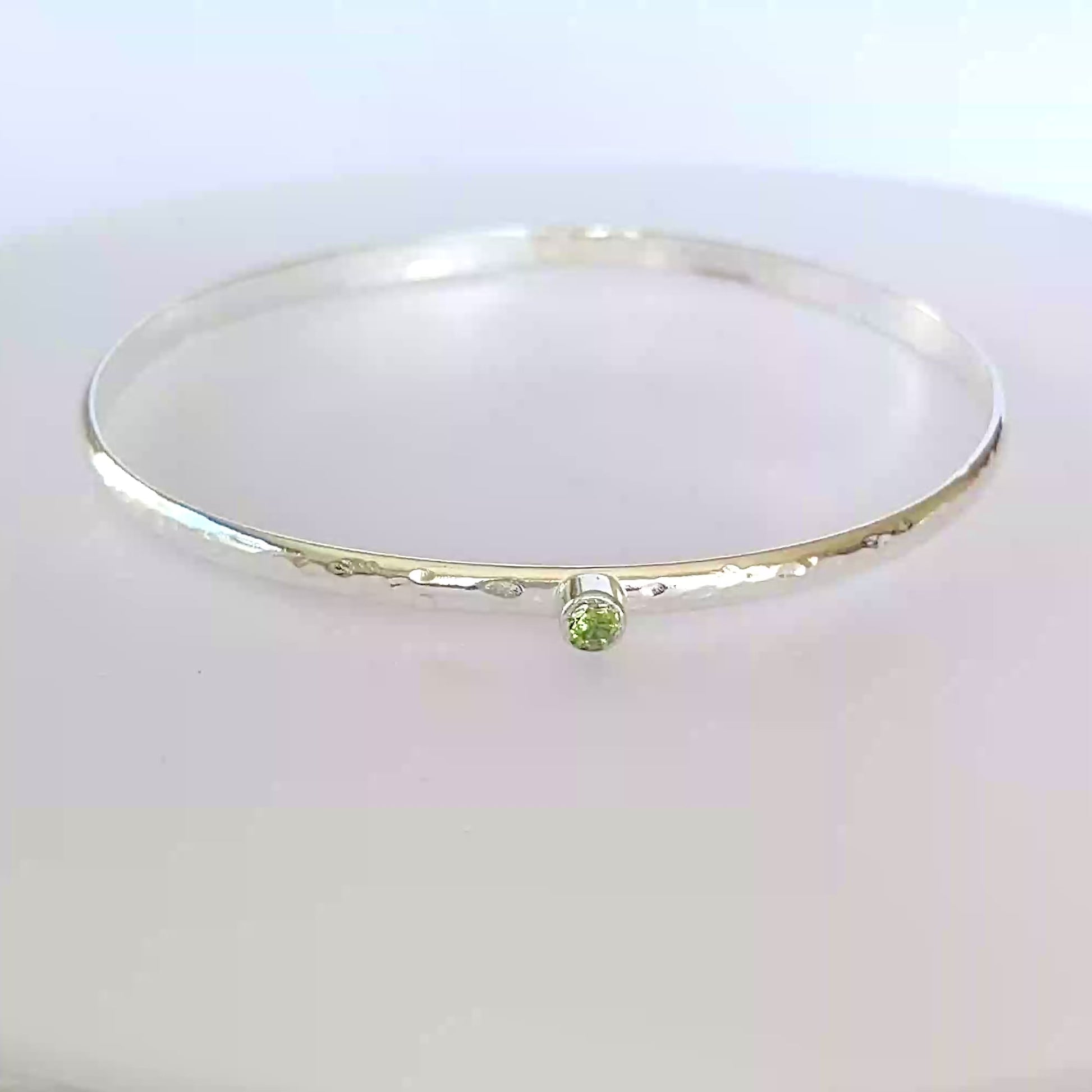 Organic Ethical Silver Textured Sterling Silver Bangle with Peridot Gemstone